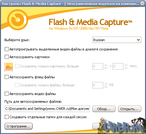 Flash & Media Capture также может автоматически сохранять картинки и ролики в указанную папку на диске, при этом можно задать фильтр по размерам изображения и не сохранять изображения менее указанного размера. Например, можно просматривать галерею изображений в браузере и автоматически сохранять картинки большого разрешения на диск.