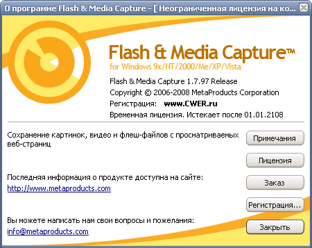 Скачать MetaProducts Flash and Media Capture 1.7.97 (3,84 МБ):