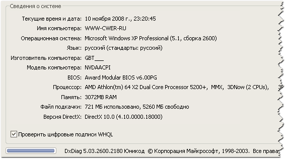 Скриншот, подтверждающий установку DirectX 10 на Windows XP.