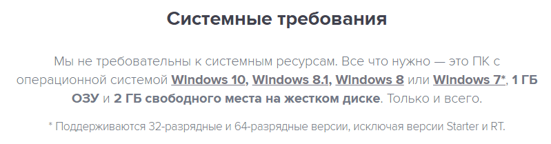 ОС: Windows 10, Windows 8/ 8.1, Windows 7