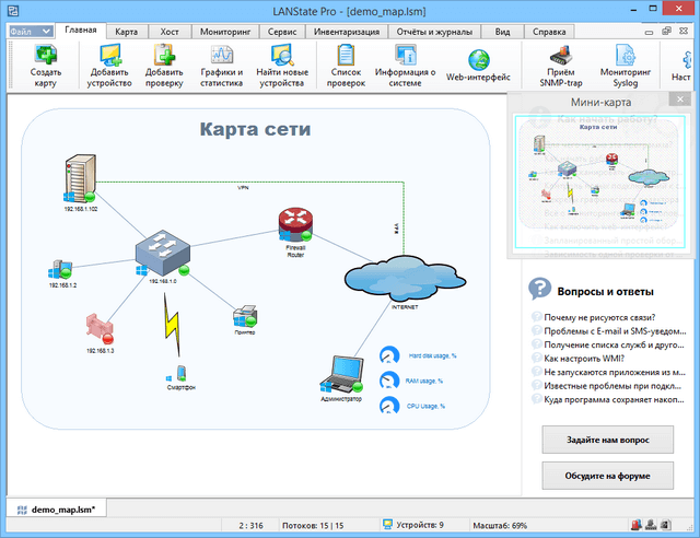 • Версия Pro позволяет демонстрировать схему сети удаленным пользователям через Web-интерфейс.