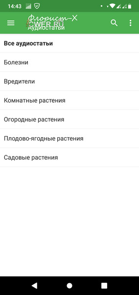 - удобная категоризация – 4 основных раздела, в каждом из которых есть подразделы, которые облегчают поиск информации о нужном комнатном или садовом растении;