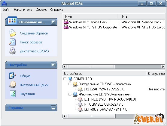 Alcohol 52% представляет собой приложение-эмулятор CD/DVD-приводов с функциями обхода защиты от копирования (поддерживаются практически все используемые на сегодняшний день решения, включая StarForce). После установки в системе появляется дополнительный виртуальный привод (до 6), вместо (31) у Alcohol 120%, к которому можно подключать образы дисков различных форматов (поддерживается работа с MDS, BWT, CCD, CUE, CDI, PDI, NRG и ISO)...