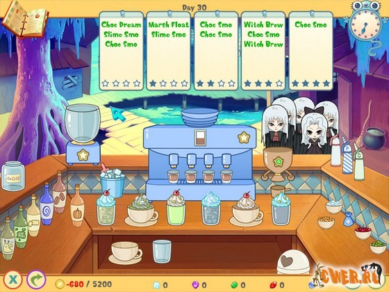 В игре множество бонусов, так, например, за ряд правильно приготовленных коктейлей появится волшебная палочка, которая всё сделает за вас. В игре также есть Лаборатория, где вы можете создавать новые рецепты. С каждым днём, обслуживая вампиров, ведьм и других волшебных существ, Алекс становится всё ближе к Кандару, городу где живёт ведьма. И если Алекс преуспеет она сможет попасть домой.