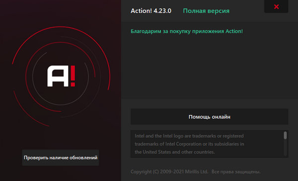Скачать программу Mirillis Action! 4.23.0 (80,8 МБ):