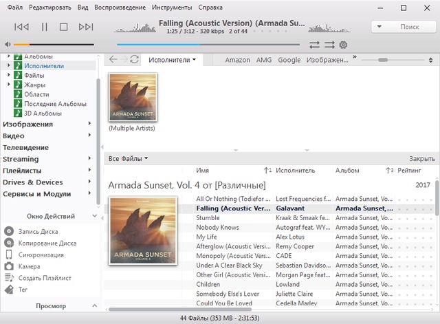 • Панель View - показывает обложки альбомов / изображений для каждого трека или CD или DVD.