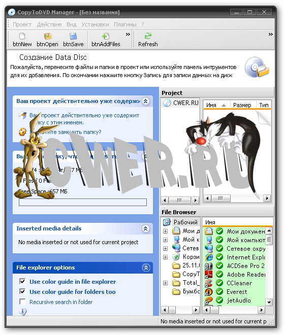 VSO Software CopyToDVD - очень простая в использовании программа, благодаря которой вы сможете практически одним нажатием кнопки записывать нужные файлы в любом формате на CD/DVD диски. После установки программа интегрируется в проводник, в результате чего запись происходит быстро и оперативно. По принципу работы схожа с программами, предназначенными для пакетной записи, при которой вы работаете с CD/DVD как с обычной дискетой. Позволяет создавать диски так же просто, как программы для пакетной записи, но при этом не создает ограничений для чтения записанных дисков. Поскольку они записываются в обычном формате, прочитать их можно на любом компьютере.