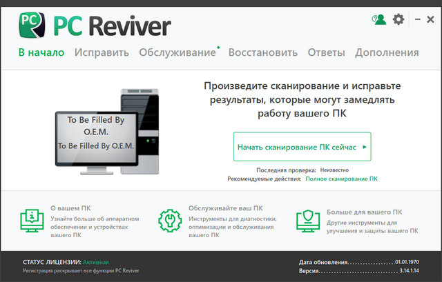 PC Reviver является многоцелевой утилитой, которая проведет диагностику ошибок на вашем компьютере, безопасно восстановит, а также подскажет иные рекомендации по техническому обслуживанию и оптимизации. Программа включает в себя основные инструменты, необходимые для тщательного анализа системы, поиска ошибок для оптимальной производительности и стабильности ПК.