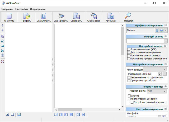A4ScanDoc - программа для сканирования документов на сканерах, начиная от настольных и заканчивая сканерами с автоподачей документов для сканирования. Одним кликом в программе A4ScanDoc возможно сканирование большого количества документов! A4ScanDoc дает возможность стандартизировать сканирование документов как в больших организациях, так и дома.