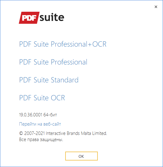 Скачать программу PDF Suite Pro+OCR 20.0.36.21543 (257,9 МБ):