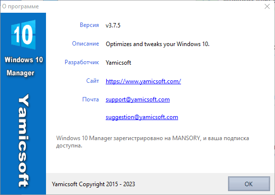 Скачать программу Windows 10 Manager 3.9.3 (22,2 МБ):