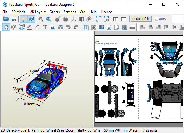 Pepakura Designer - программа-конструктор оригами, для создания выкроек бумажных моделей из готовых 3D объектов. Имеется возможность самостоятельного создания трехмерных моделей и без наличия самого 3D редактора, а также перевод трехмерных объектов в 2D формат для последующего вывода их на печать. После преобразования в печатаемый вид, программа представит выкройку-изображение с размеченными линиями для вырезания и сгибов для сборки и склейки конечной модели. Поддерживаются многие популярные форматы: 3DS, DXF, MQO, LWO, OBJ, STL, KML, KMZ и др.