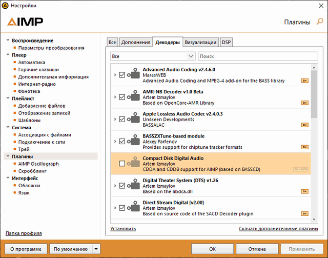 • Плейлисты: AIMPPL, AIMPPL4, M3U, M3U8, PLS, WAX, ASX, ASF, WPL, XSPF, CUE.