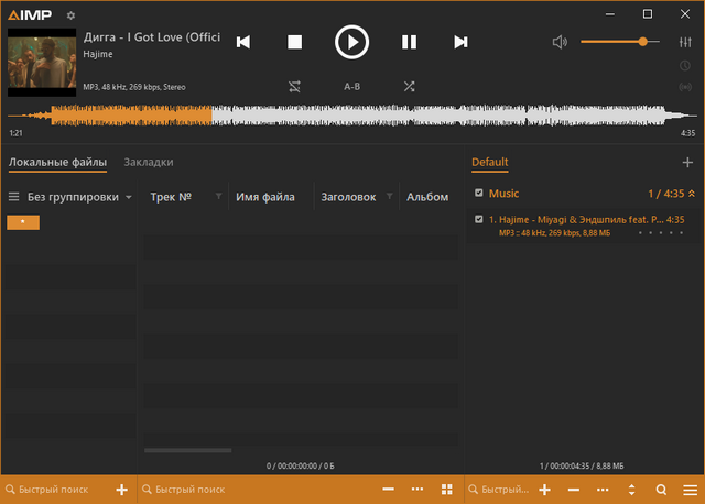 AIMP - популярный бесплатный аудиоплеер для Windows, поддерживающий воспроизведение многих аудио форматов, плейлистов, подкастов и интернет-радио. Включает плейлисты с вкладками, библиотеку, эквалайзер, визуализации, поддержку обложек и плагинов, а также широкие возможности по воспроизведению музыки и работы и аудио библиотекой.