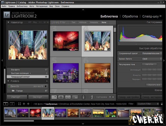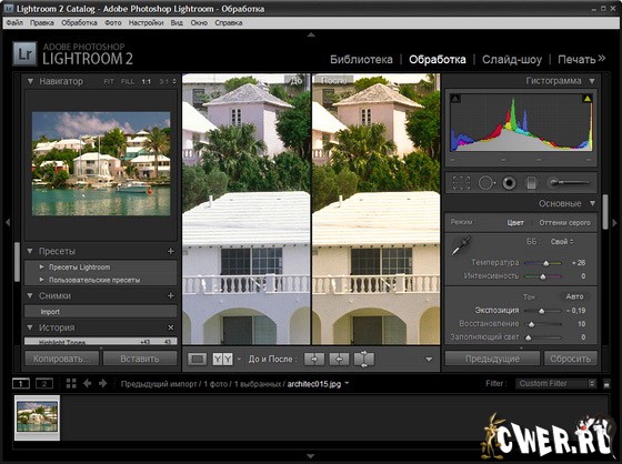 Adobe Photoshop Lightroom - программа является неотъемлемым приложением в современном рабочем процессе цифровой фотографии. Теперь появилась возможность быстрого выполнения действий по импорту, обработке и демострации изображений, а также по управлению ими — как для одного снимка, так и для целой серии снимков. Улучшенные инструменты исправления, мощные функции систематизации и возможность гибкой настройки параметров печати ускоряют процесс работы. Использование Lightroom позволяет уменьшить время, проведенное за компьютером, и потратить освободившееся время на работу с объективом.