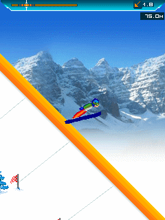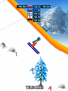 Игра для мобильных телефонов. "Перепрыгните" всех чтобы выиграть. Стрыбки на лыжах. Размеры экранов: 128х128, 128х160, 176х208, 176х220, 240х320.