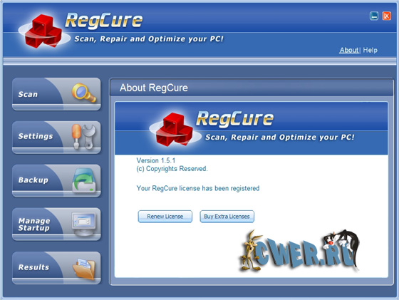 Скачать RegCure 1.5.1.3 (0,7 МБ):