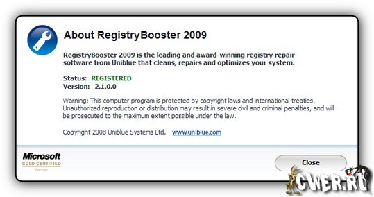 Скачать Uniblue RegistryBooster 2009 v2.1.0.0 (2,05 МБ):