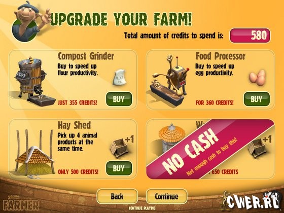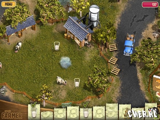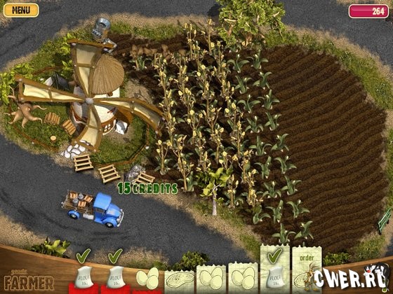 Эта новая очень красочная игра научит вас всем премудростям ведения фермерского хозяйства. Вам предстоит начать с небольшой фермы, производящей муку для сельской пекарни. По мере роста, вы сможете модернизировать вашу ферму - построить конюшню, курятник, завести свиней и овец... Выращивать помидоры, картофель, виноград и ещё многое другое. Вам придётся трудиться не покладая рук, чтобы вовремя обеспечить торговые лавки своей продукцией, ведь только на заработанные деньги вы сможете развивать хозяйство и приобретать новое оборудование.