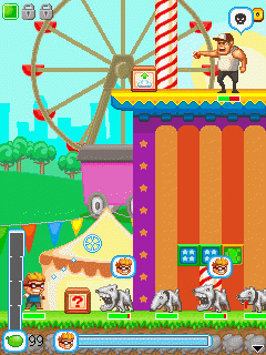Игра для мобильных телефонов. В игре вам нужно метать водяные бомбы, стараясь просчитать угол и скорость полета. Размеры экранов: 128х128, 128х160, 176х208, 176х220, 240х320, 320х240, 325х416.