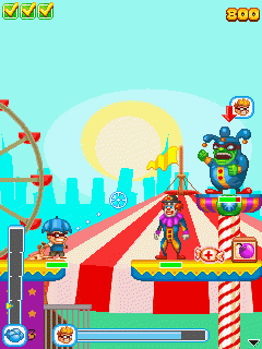 Игра для мобильных телефонов. В игре вам нужно метать водяные бомбы, стараясь просчитать угол и скорость полета. Размеры экранов: 128х128, 128х160, 176х208, 176х220, 240х320, 320х240, 325х416.
