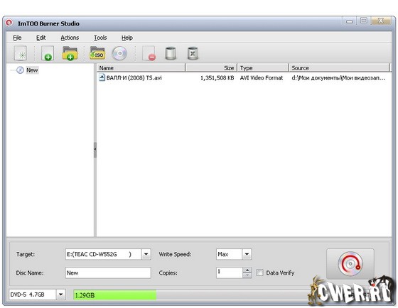 ImTOO Burner Studio - простая в использовании программа для записи любых данных, музыки, видео, изображений и других файлов на CD и DVD диски. Программа поддерживает различные форматы CD/DVD дисков, такие как CD-R, CD-RW, DVD-R, DVD+R, DVD-RW, DVD+RW и DVD+R DL. Кроме обычной записи файлов на дисик, данная программа может создавать ISO образы из любых файлов на вашем компьютере. Кроме того, программа позволяет напрямую открывать и редактировать ISO файлы в окне утилиты, а также извлекать файлы из образов на локальный диск. Утилита также обладает такими стандартными возможностями, как выключение компьютера после окончания записи, стирание многоразовых дисков и другие. Обладает мягким, приятным и легким в использовании интерфейсом.