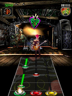 Игра для мобильных телефонов. Играй на мобильном телефоне, как на настоящей гитаре. Здесь не нужны медиаторы, струны и железные мозоли на пальцах. Эта игра превращает мобильник в настоящий музыкальный инструмент, на котором звучат мировые хиты. Фанаты рока просто сойдут с ума. Удиви друзей, порази родственников! Размеры экранов: 128x128, 128х160, 176х208, 176х220, 240х320, 352х416.