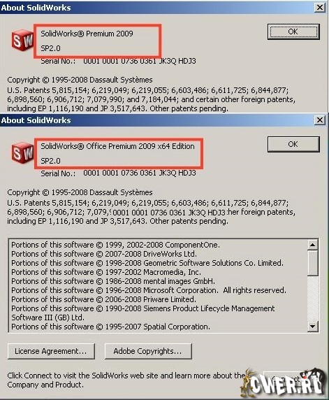 4) после окончания обновления ядра необходимо запустить соответствующие кряки ядра из архива sw2009sp2.0_cracks.rar, а также кряки для eDrawings2009 SP2.0 и SW PhotoView 360 SP2.0 (если они будут установлены)