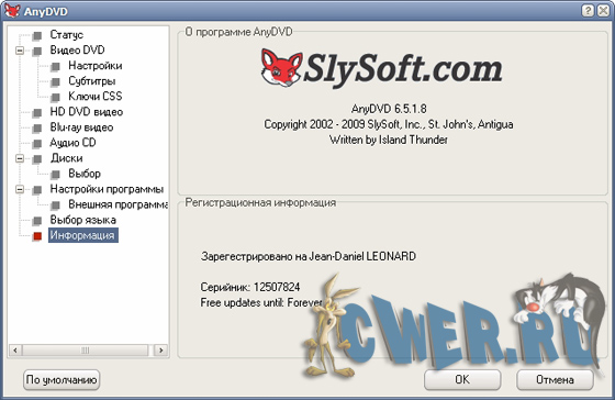 AnyDVD - предназначена для снятия защиты с любых DVD-дисков, так что вы сможете просматривать DVD-фильмы на компьютере с DVD-ROM, региональный код которого не соответствует этому DVD-диску. Даже если ваш привод не "обеззонен", у вас есть возможность копировать диски с любым региональным кодом напрямую с DVD-ROM на DVD±RW!