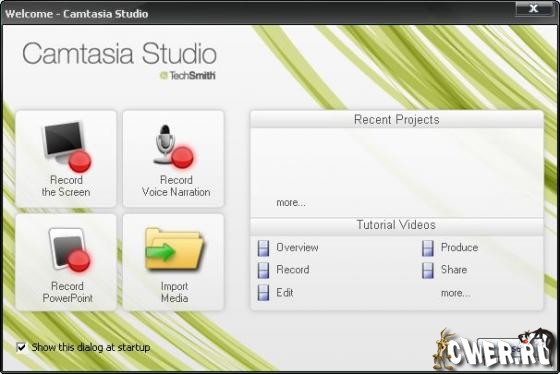 Camtasia Studio включает в себя четыре утилиты: Camtasia MenuMaker, Camtasia Player, Camtasia Theater и Camtasia Recorder. Для работы со всеми этими утилитами служит главный интерфейс программы.