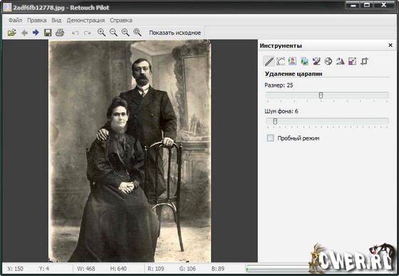 Программа Retouch Pilot разработана для удаления нежелательных объектов и ретуши любых дефектов, существующих на фото или появившиеся при сканировании. Retouch Pilot - ретушь дефектов, существующих на фото или появившихся при сканировании.