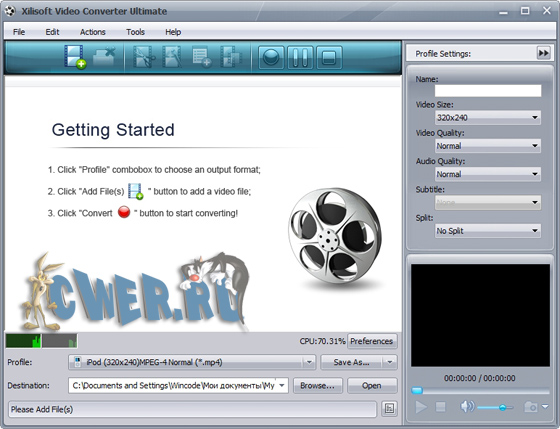 Xilisoft Video Converter - мощный и универсальный видео конвертер. Поддерживает большинство популярных видео форматов, в том числе DVD, VCD, SVCD, MOV, RM, AVI, MPEG, MPEG1, MPEG2, MPEG4, WMV, 3GP и других, извлечение аудио из видео в MP2, MP3, AC3, RA, M4A, OGG, AAC и другие форматы, пакетный режим конвертирования, предварительный просмотр во встроенном проигрывателе, выбор и настройка аудио и видео кодеков, настройка параметров конвертирования, простой и удобный интерфейс.