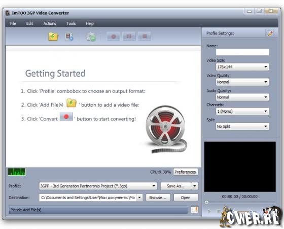 * конвертер MPG, MPEG1, MPEG2, MPEG4, WMV, MP4, 3GP, MOV, RM, DV, YUV, H264 в 3GP формат