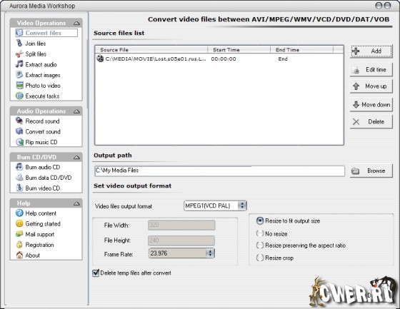 Aurora Media Workshop является программой, включающий в себя полный спектр средств для работы с видео и аудио файлами. Аудио и видеo конвертер, нарезка и соединение треков, граббер аудио CD, извлечение аудио из видео файлов, прожиг CD, создание видео CD из набора фотографий с множеством эффектов перехода, извлечение картинок (фреймов) из видео файлов, граббер DVD (VOB, DAT) в видео форматы, а аудио в MP3, WMA, WAV форматы, поддержка: AVI, MPEG1, MPEG2, ASF, WMV, VOB, DAT, DivX, XviD, MP3, WMA, WAV, OGG и других форматов.