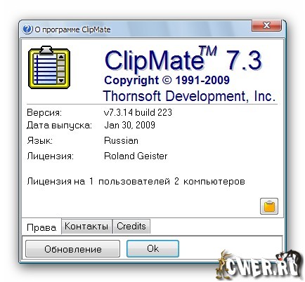 Скачать ClipMate 7.3.14 build 223 (7.2 МБ):