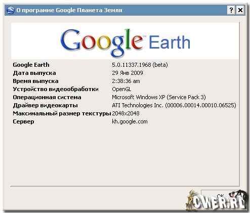 Скачать Google Earth 5.0.11337.1968 Beta (9,9 МБ):
