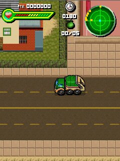 Игра для мобильных телефонов. Вы думали что мусоровозы это скучная работа, а это далеко не так. Вам предстоит узнать какое это удовольствие и почувствовать весь драйв, играя в роли мусоросборщика. Размеры экранов: 176х208, 240х320, 352х416.