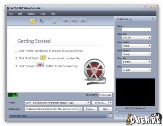 * конвертер MPG, MPEG1, MPEG2, MPEG4, WMV, MP4, 3GP, MOV, RM, DV, YUV, H264 в 3GP формат
