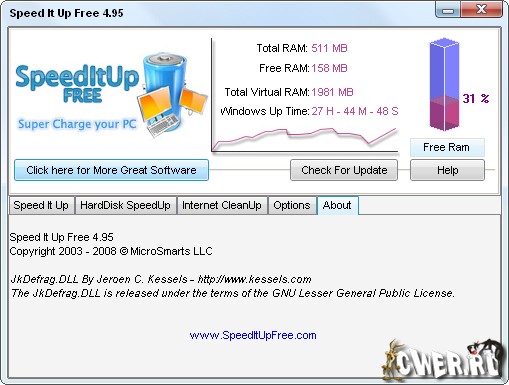 Note: To get the latest version, simply use the update function of SpeedItup Free.
