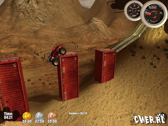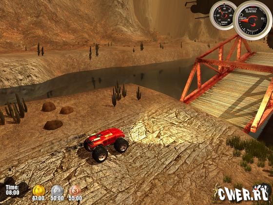 Внедорожные монстры покоряют высоту мертвых петель, перепрыгивают через пропасти, катаются сквозь трубы и выполняют другие сумасшедшие трюки. Одним словом, делают всё то, за что в реальной жизни отбирают права. В игре отличная графика, реалистичная физика, несколько десятков трасс, а также 5 внедорожников, включая 3 секретных.