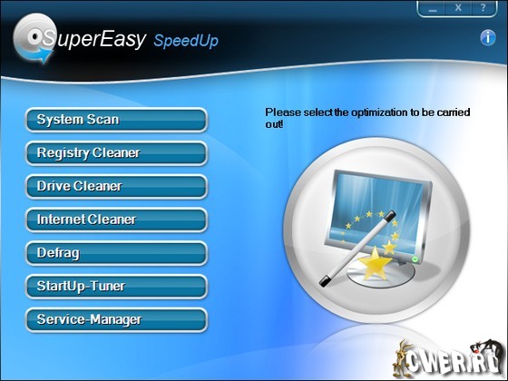 SuperEasy SpeedUp - поможет вам оптимизировать и ускорить загрузку Windows, за порядок будут бороться несколько модулей, DriveCleaner очищяет винчестер от не нужных файлов, System Scan следит за чистотой системных папок, RegistryCleaner за реестром, InternetCleaner за интернет папками, StartUp-Tuner за автозагрузкой, а Defrag произведет дефрагментацию жестких дисков.