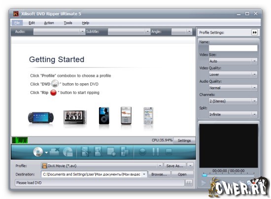 • риппинг в VCD,SVCD, DivX, MPEG1, MPEG2, MPEG4, AVI