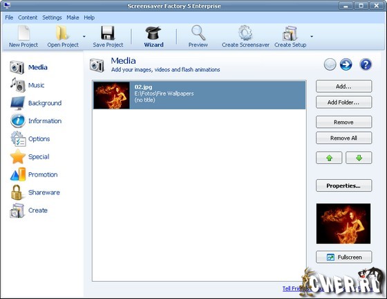• Создание самораспаковывающихся файлов и CD дисков для легкого распространения заставок