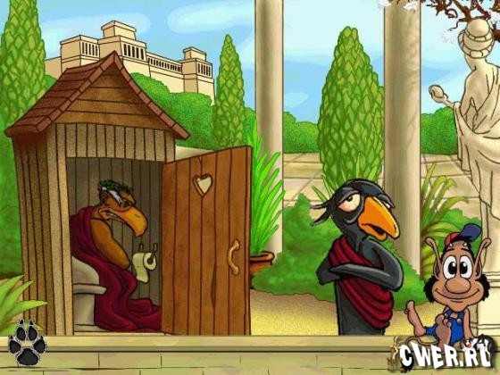 - В этой компьютерной игре Кузе нужно проложить канализационные трубы под уборной Цезаря. Да, что и говорить, задание не из приятных, но победителя ждет ценная деталь для ветряной мельницы.