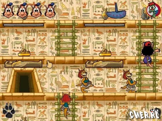 - Пройдя по всем этажам древней пирамиды, Кузя должен помочь мастеру похоронных дел уложить три мумии в отведенные для них саркофаги. Но сделать это не так-то просто – ведь в коридорах пирамиды Кузька может столкнуться с разбойниками, которые охотятся за золотом и драгоценностями. К тому же нашему герою нужно обязательно успеть до рассвета.