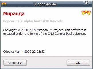 Скачать Miranda IM v0.8.0 Test Build 28 + Rus (3 МБ):
