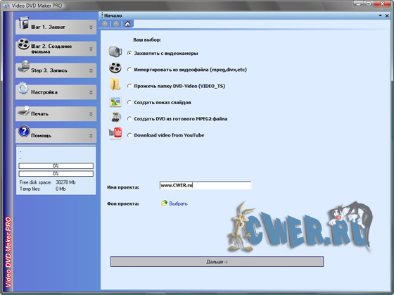 Video DVD Maker PRO is an inexpensive, all-in-one solution that allows you to grab your video from a camera or other source, convert it into an appropriate format and burn it to a DVD or a Video CD disk. Video DVD Maker PRO includes DVD menu and CD cover builders. let's meet on cwer.ws The program features a clean, simple and easy-to-use Wizard-like interface. It will guide you through each step. So, there is no need to study any help files.