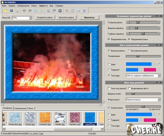 3D FRAMES - графический редактор, позволяющий создавать яркие и стильные рамки для фотографий. В отличие от других подобных продуктов, программа генерирует каждую рамку в режиме реального времени, передаёт тени, блики и другие эффекты освещения.