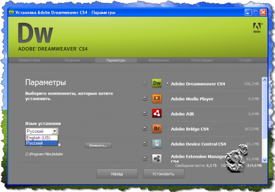 Скачать Adobe Dreamweaver CS4 (419 МБ):
