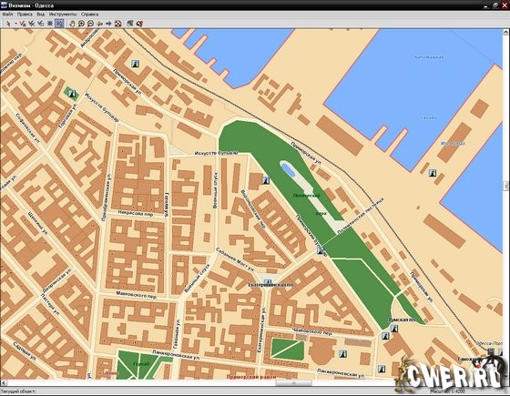 Детальная карта улиц и строений Одессы от геоинформационной поисковой системы "Визиком". Карта снабжена набором инструментов: "поиск объектов", "выбор объектов", "распознавание объектов на карте", "измерение расстояний".